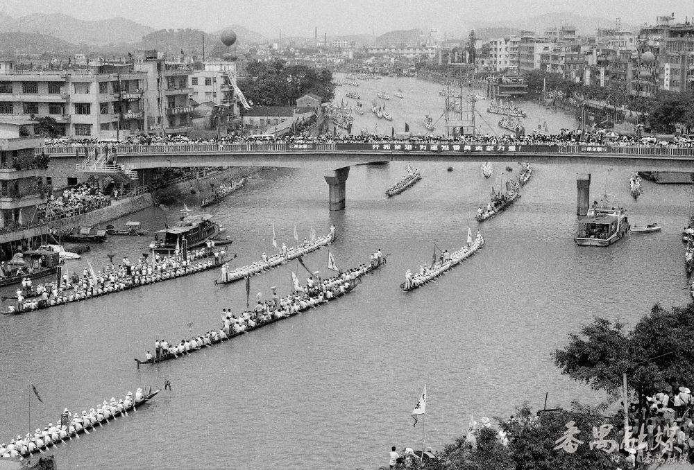 当年的市桥大桥上站满了观看龙舟赛的群众(历史资料照片)
