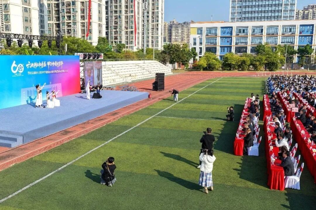12月28日,肇庆高新区大旺中学举行建校60周年暨高质量发展大会。区内外学校代表、省内外校友、社会各界嘉宾及校内师生6400多人齐聚一堂,共叙师生情谊,共谋家乡发展。肇庆高新区党工委书记、管委会主任江泽全,区党工委委员、管委会副主任李刚毅等领导出席活动。