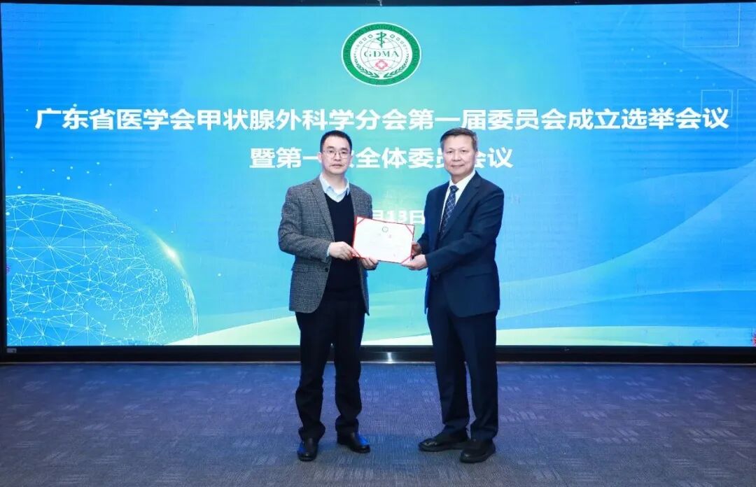 近日,广东省医学会甲状腺外科学分会第一届委员会第一次全体委员会议暨换届会议在广州举行,选举产生了第一届主任委员、副主任委员、常务委员及候任主任委员。会议由广东省医学会秘书长李国营、学术管理与组织管理部部长陈大富主持。