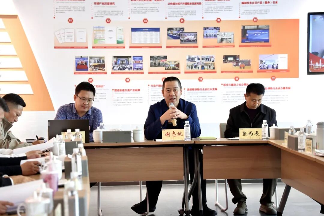 参观结束后,由广州市委社会工作部副部长谢志斌主持交流座谈会。联盟作为轮值单位,张建博副秘书长首先介绍了广州市轨道交通产业联盟推动产业“抱团出海”的创新实践。联盟通过组织专题会议、摸清产业家底、对接政策资源、探索合作机制等举措,推动产业链协同发展。截至目前,10家重点会员企业已在17个国家承接37个境外项目,合同总额超200亿元,业务涵盖设计、施工、装备制造全链条。联盟创新“链式党建”模式,发挥广州地铁集团等链主企业引领作用,带动中小企业共同拓展市场;建立信息共享、风险联控机制,降低企业出海风险;积极对接“中国企业'走出去'综合服务中心”等国家级资源,为会员企业提供全方位支持。