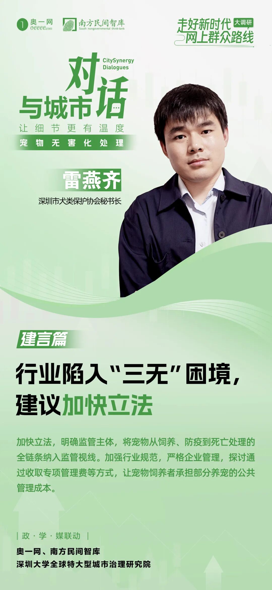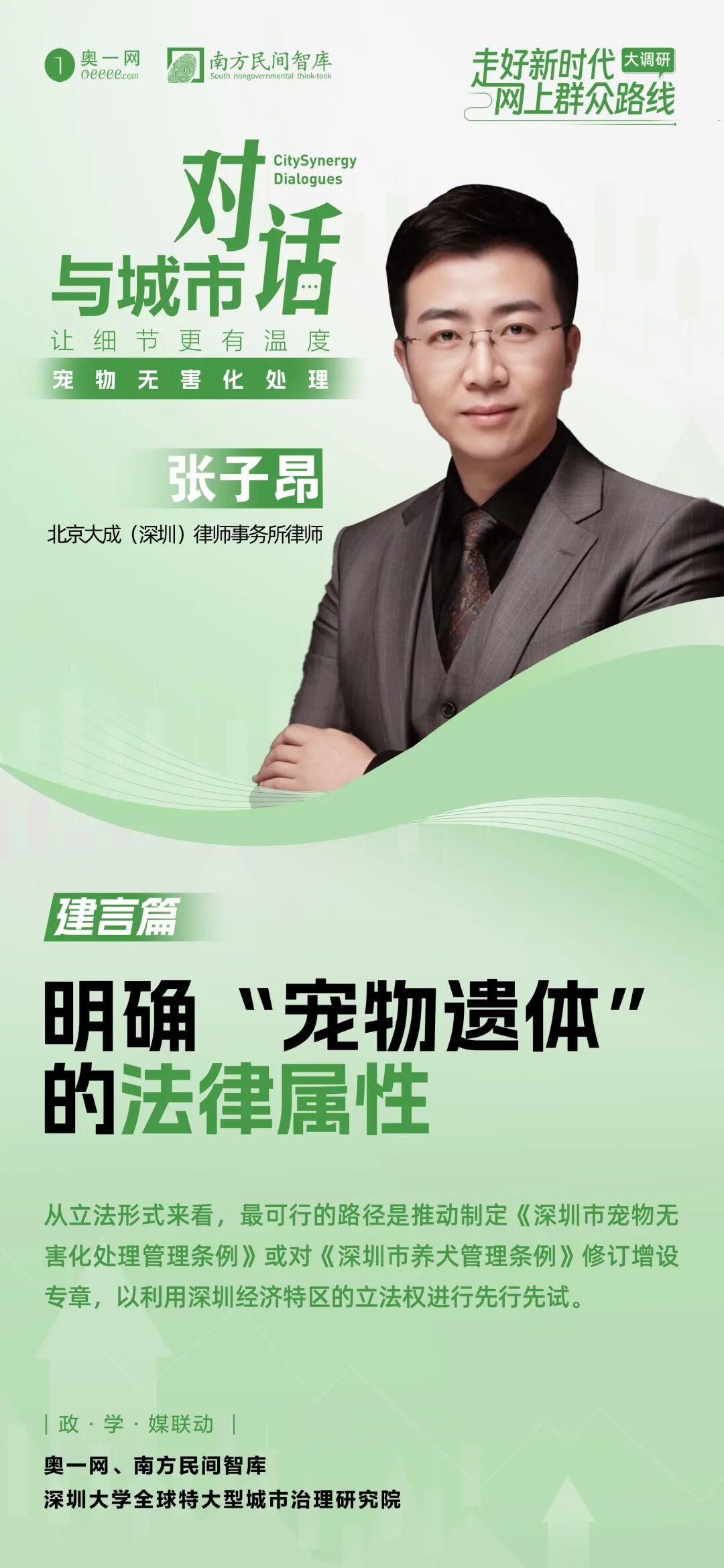 北京大成(深圳)律师事务所律师张子昂建议,形成一个关于深圳市宠物无害化处理管理现状、问题与立法必要性报告,这将是启动立法程序最重要的“敲门砖”。