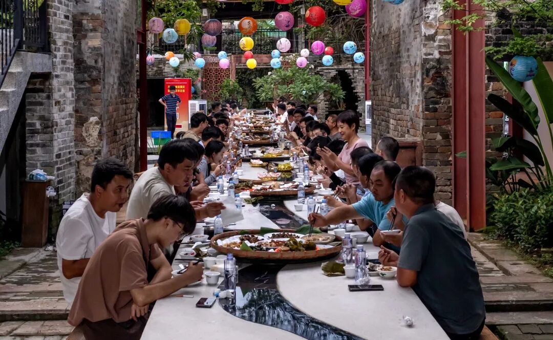 龙门县龙华镇长滩村,传统长桌宴让游客赞不绝口。