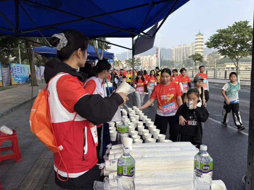 一抹抹跃动的“志愿红”是活动上又一道亮丽的风景线,114名志愿者的服务贯穿始终。活动前,他们协助物资分发、物资整理、场地布置;活动中,他们在各个补给站、引导点、存包处提供热情周到的服务;活动后,他们又投入到场地清理、物资回收工作中。无数声真诚的鼓励、一次次及时的援手,志愿者们用青春的汗水,浇灌出恩平这座城市最温暖的人文花朵。