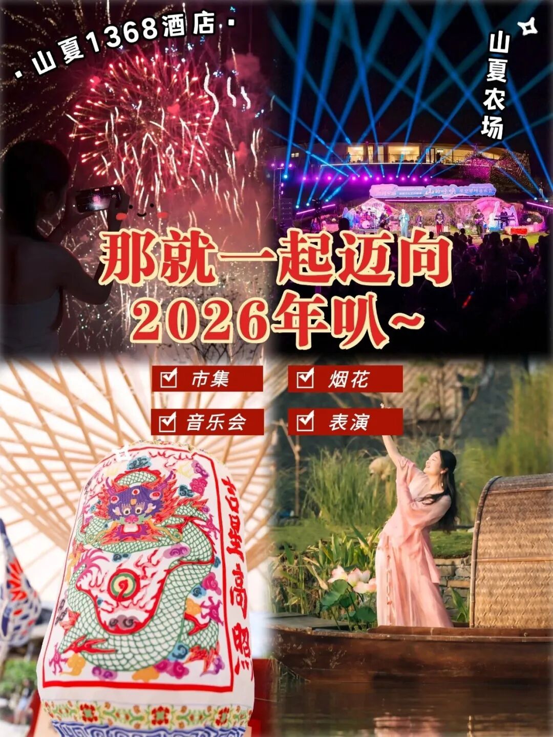 为你准备了一场沉浸式新年嘉年华!音乐、舞蹈、烟花、非遗市集全都有~而且,所有表演免费观看!带你热闹开启2026!