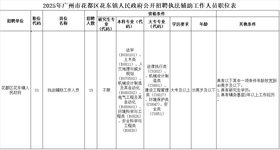 1.2025年广州市花都区花东镇人民政府公开招聘执法辅助工作人员职位表