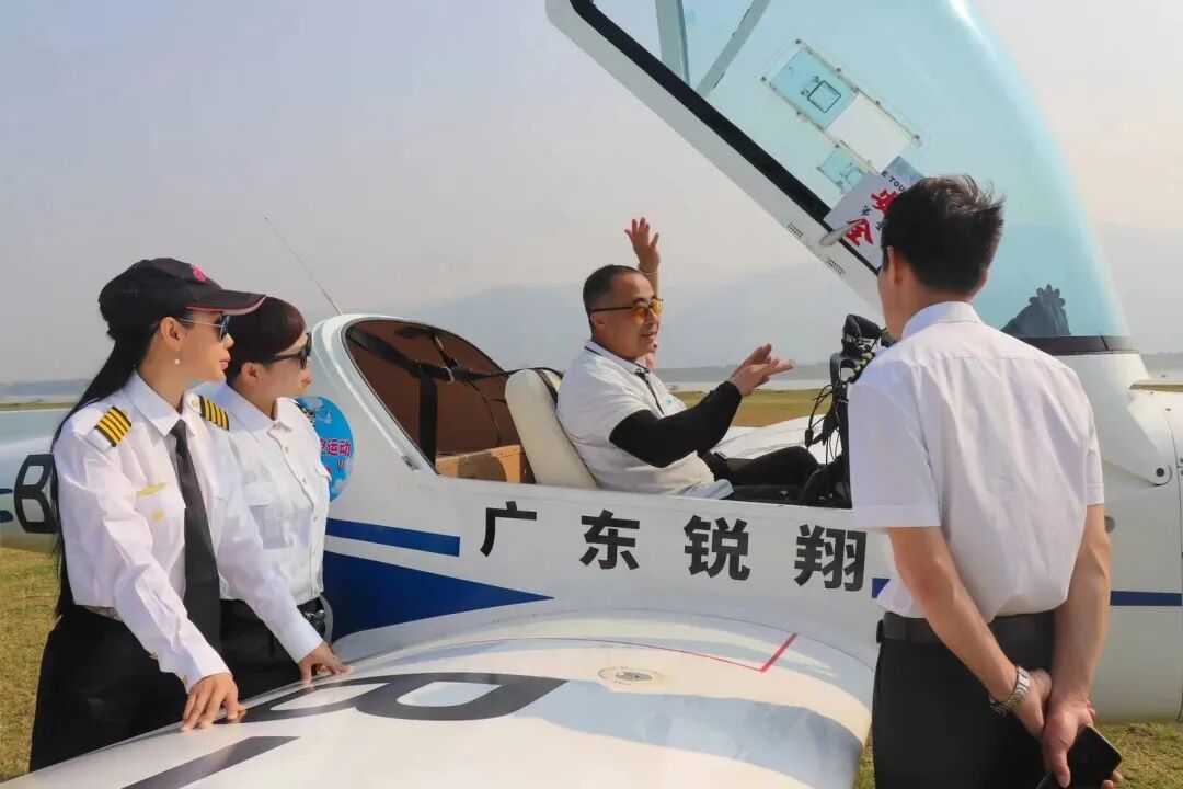 △市民游客在砚洲岛航空运动旅游营地体验飞行。梁小明 摄