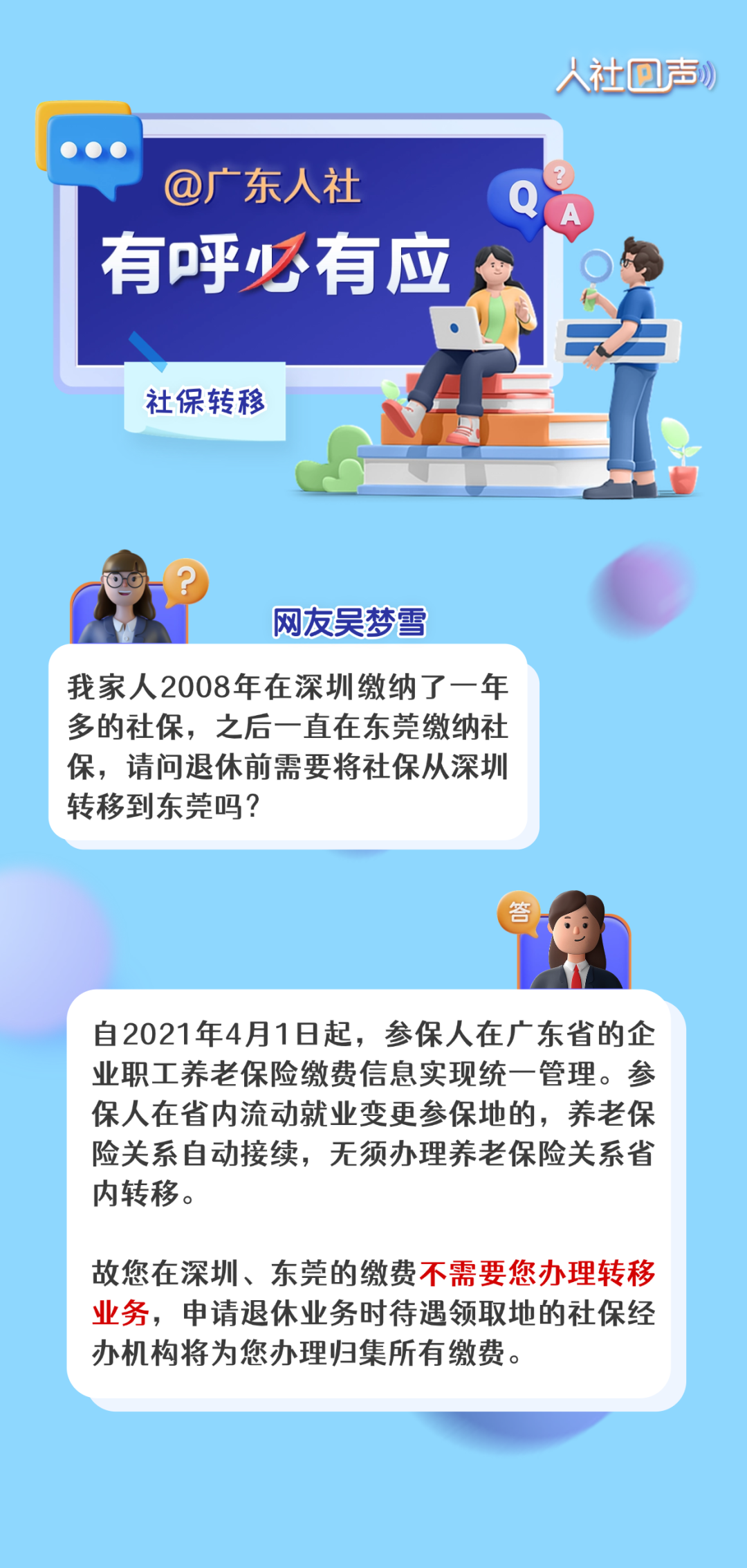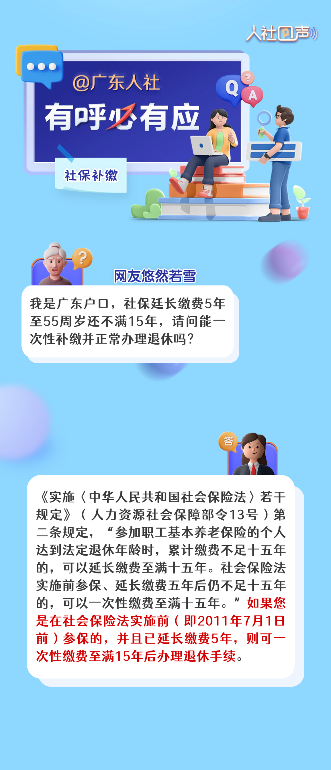 编者按:着眼“民”问题,互动“零”距离。为着力解决群众急难愁盼问题,把惠民生的事办实、暖民心的事办细、顺民意的事办好,广东人社推出《人社回声》栏目,聆听大家的心声,精选公众号留言进行答复,解答有关就业创业、社会保障、人才人事、劳动关系等领域的问题。