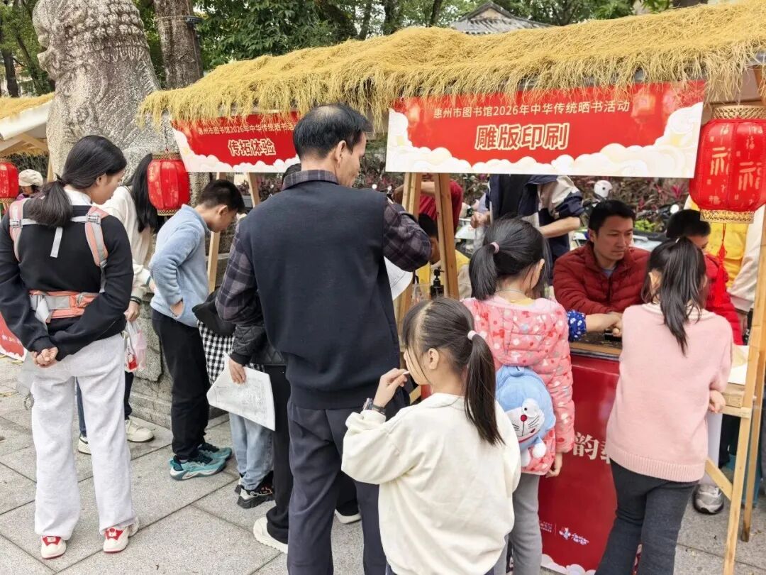 惠州市图书馆在中山纪念堂门口开展的“文脉传薪 古韵载福”2026年中华传统晒书活动,成为了假日文化惠民的一大亮点。活动现场展示了《史通削繁》《人天共宝》等馆藏珍贵古籍的影印本,让人们有机会近距离欣赏到这些珍贵的文化遗产。活动吸引了大量传统文化爱好者及亲子家庭参与,现场气氛热烈。