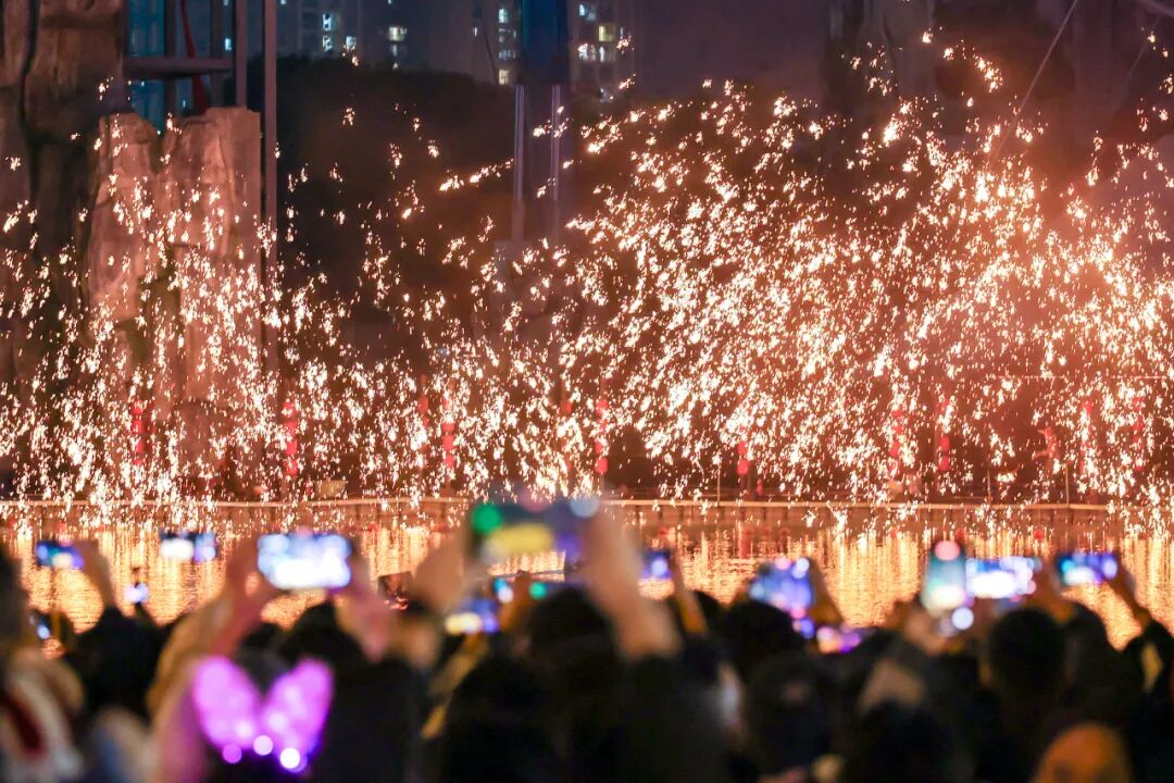 融创文旅城推出跨年迎新超长节目单,炫彩烟花秀、水上花火秀、电音派对等活动轮番登场,吸引了30多万人次市民游客前来体验。