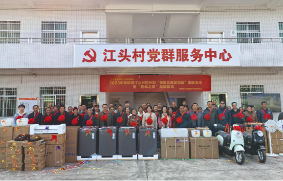 2025年,江头村举办积分制“邻里风采促和谐”主题活动暨“睦邻之星”颁奖仪式,63名村民凭借累计的积分获得电动车、空调、洗衣机、电饭锅等丰厚奖品,这些奖品全部由村集体收入提供,80余名现场参与者共同见证了这份荣誉。