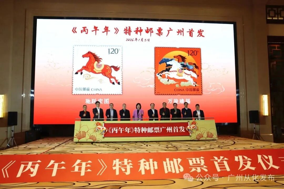 骏马奔腾展宏图,方寸邮票传文脉。1月5日上午,2026《丙午年》生肖特种邮票首发活动在从化区从都国际庄园盛大举行。