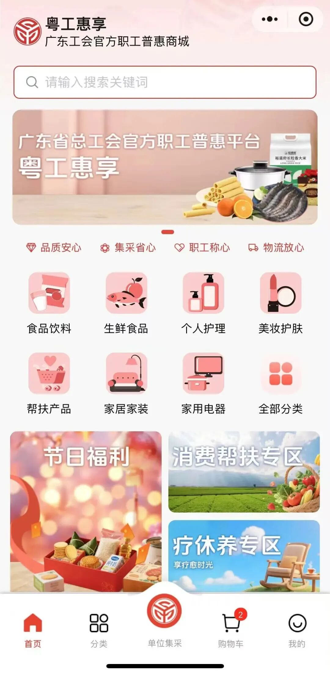粤工惠平台焕新升级之际,该平台承担交易及权益核销功能的职工普惠商城“粤工惠享”也正式上线试运营。聚焦福利集采、消费帮扶、疗休养三大核心功能,精准对接各级工会与广大职工会员需求。