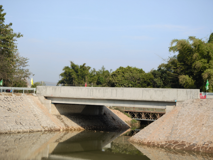 新建七星桥采用钢筋砼现浇箱梁结构,按20年一遇洪水位标高设计,采用1×20米钢筋砼现浇箱梁结构,其中一桥全宽9米,二桥适配道路线形采用单箱变宽设计(全宽9-10.35米),均设置0.5米防撞护栏+宽幅车行道的安全布局,道路等级达到四级公路标准,设计基准期100年、安全等级一级,全面提升通行安全性与耐久性。
