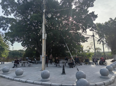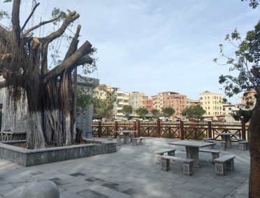 已完成修剪树枝、围栏粉刷,增设石墩,石桌和石椅