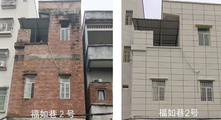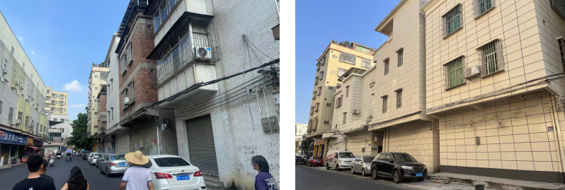 ▲官溪村农村风貌,主要交通干道红棉大道、风神大道可见的赤膊房外立面升级改造