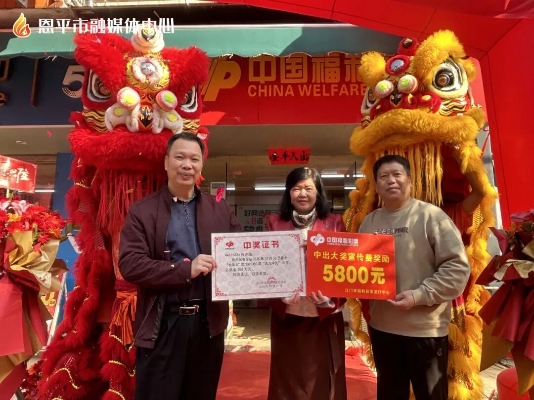 记者从市民政局获悉,2025年12月30日晚,福彩“快乐8”第2025350期开奖,我市一位彩民以选九全中的号码进行10倍投注,单注奖金25万元,揽获总奖金250万元。1月7日上午,江门市福利彩票发行中心和恩平市民政局为该福彩投注站颁发中奖喜报。