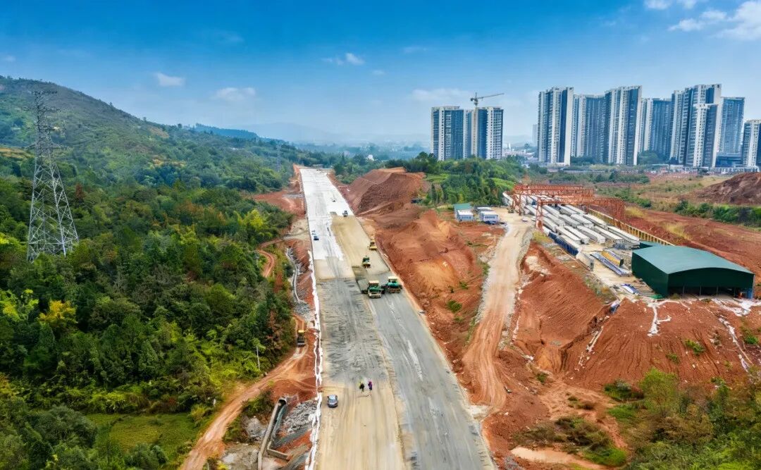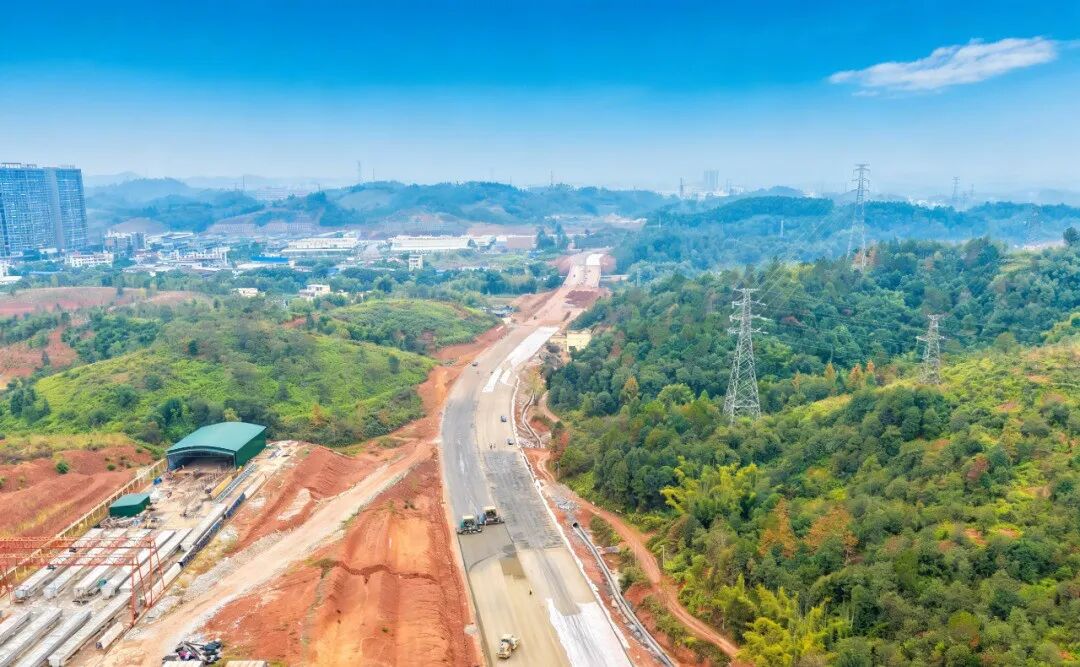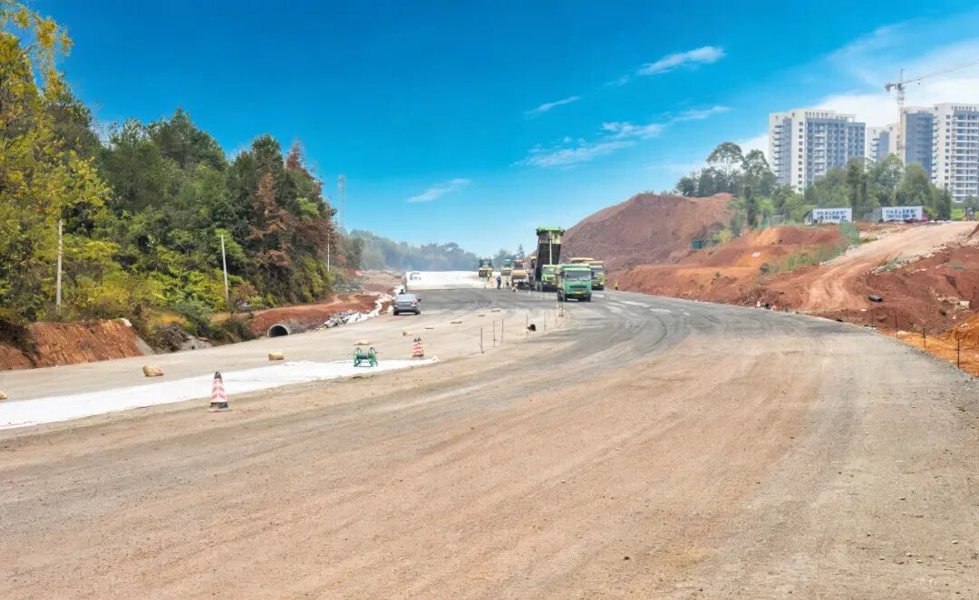 目前,项目路基填筑已完成95%,路面水稳基层摊铺完成50%,预计春节前可完工通车。