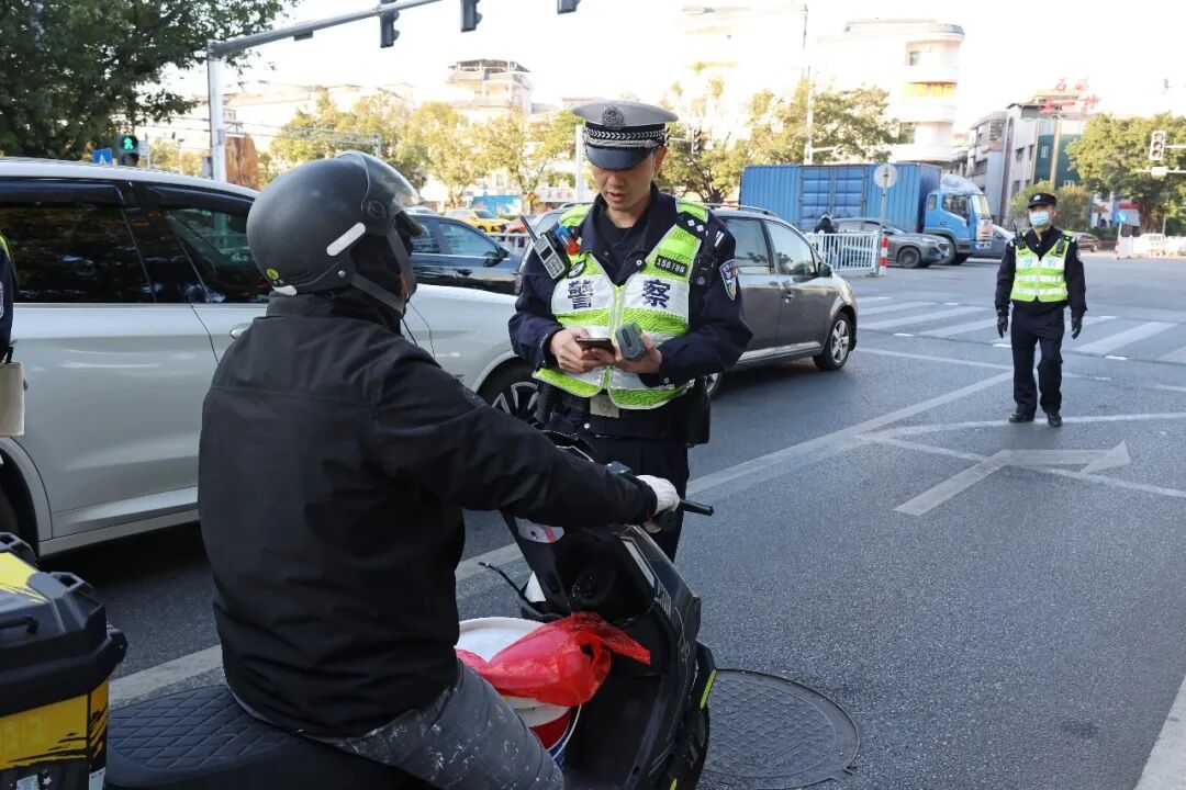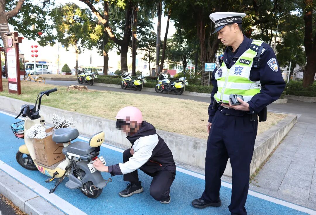 “非机动车必须行驶在非机动车道,骑乘人员都要规范佩戴安全头盔。”现场,执勤民警对违法驾驶人进行批评教育,指出其行为的危害性,并和他们一起组建临时劝导小分队,结合观看警示教育片,让违法人员戴红袖章,手持小红旗,协助现场民警开展纠违工作,宣传“早点走、靠右行、慢慢开”的安全骑行规范,引导驾驶人自觉遵守交通规则。