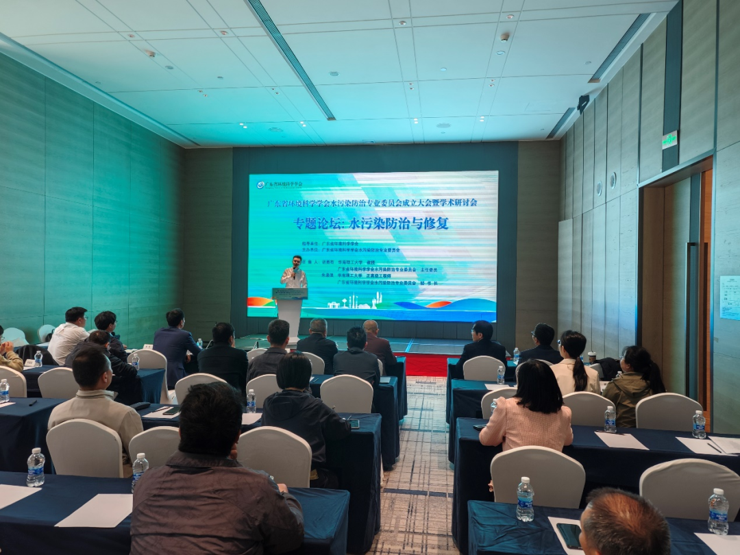 2025年12月19日下午,广东省环境科学学会水污染防治专业委员会(以下简称专委会)成立大会暨水污染防治与修复专题论坛在佛山成功举办。广东省环境科学学会理事长汪永红,副理事长兼秘书长邹耀,专委会主任委员、华南理工大学胡勇有教授,专委会副主任委员、中山大学孟凡刚教授等领导嘉宾出席论坛。会议由专委会秘书长、华南理工大学朱枭强正高级工程师主持。