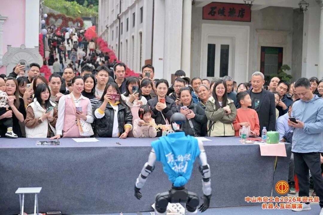 开街以来,一系列文旅活动在此轮番上演,其中不乏工会“娘家人”的身影。2025年11月中旬开始,中山市总工会创新采用“科技+文化”职工服务模式,推出“职工巡游乐”品牌活动,每周日准时在孙文西路文化旅游步行街与职工群众相约。期间陆续呈现了大唐不倒翁、街头音乐会、机器人展演等系列文化活动,其中最具科技感的要属围绕机器人及智能设备打造的互动体验,包含“人机共挥毫”写春联送祝福、智能机器人街舞拳击秀等,吸引众多职工家庭参与。