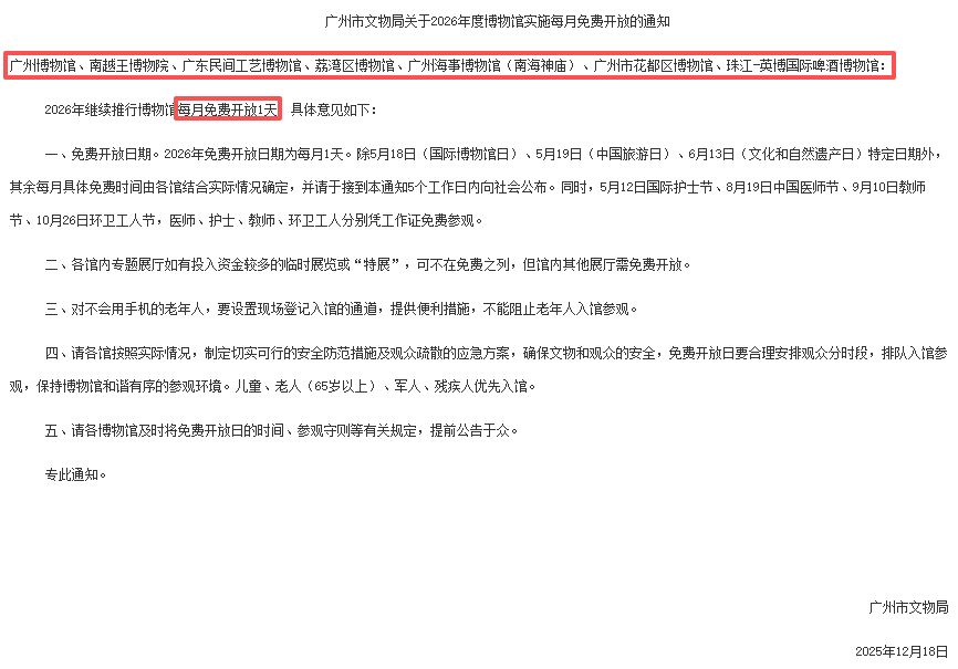 花都区博物馆下辖的洪秀全故居、资政大夫祠2026年的免费开放日为1月14日、2月11日、3月18日、4月15日、5月18日(国际博物馆日)、5月19日(中国旅游日)、6月13日(文化和自然遗产日)、7月15日、8月12日、9月16日、10月14日、11月18日、12月16日,您可以选择在这些日子免费参观。