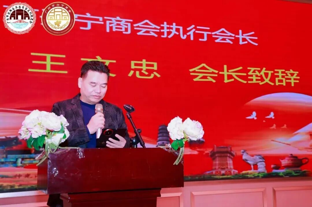 广州市兴宁商会执行会长兼秘书长王文忠代表市商会上台致辞。他向年会的圆满举行表示祝贺,并对花都分会成立以来,在以刘振强会长为首的班子带领下取得的显著成绩给予了高度评价。他勉励两会继续发挥好桥梁纽带作用,团结服务好广大乡亲与企业家,共同擦亮“兴商”品牌,并送上了美好的新年祝福。