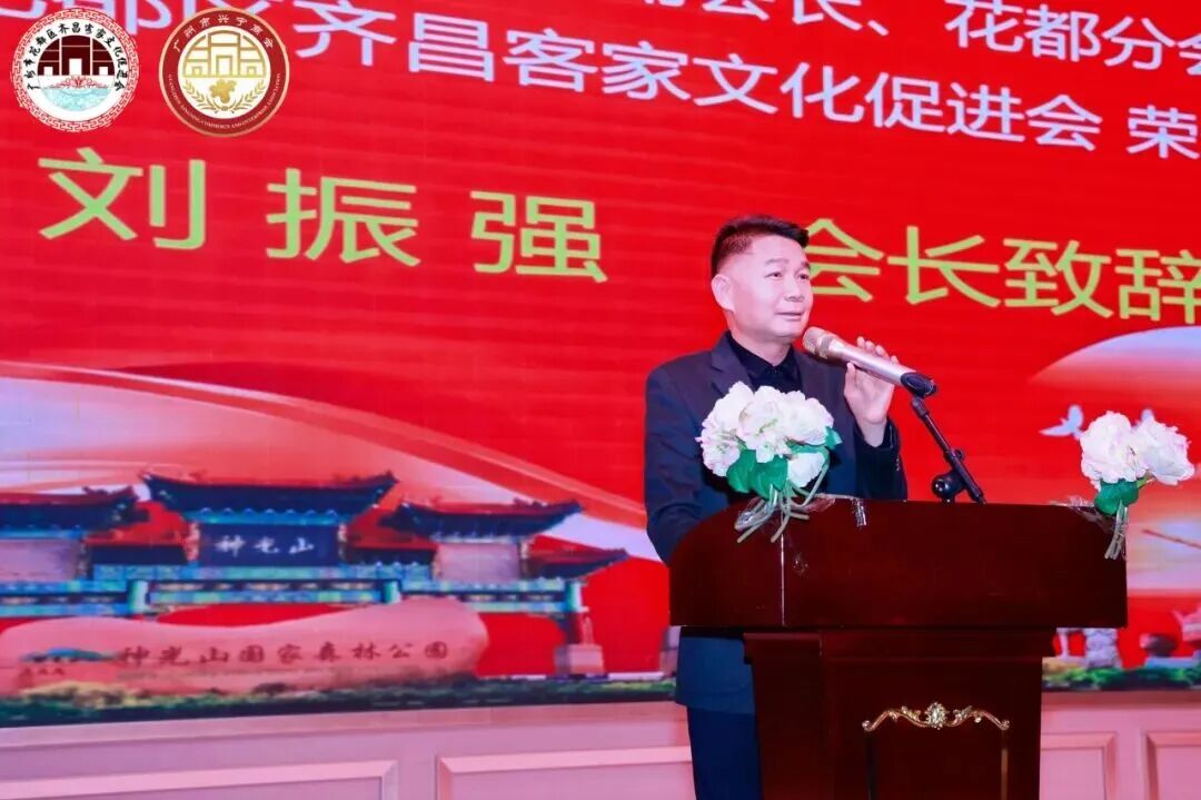 广州市兴宁商会花都分会会长、花都齐昌客家文化促进会荣誉会长刘振强在致辞中花都兴商、乡友一年来对花都分会的支持表示感谢。他深情回顾了分会自成立以来,在总会的指导下,与促进会紧密协作,共同搭建“兴商之家”的历程,并表示未来将继续深化合作,凝聚更大合力。