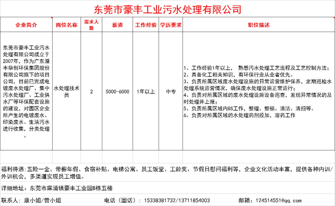 东莞市豪丰工业污水处理有限公司