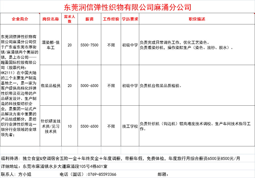 东莞润信弹性织物有限公司麻涌分公司