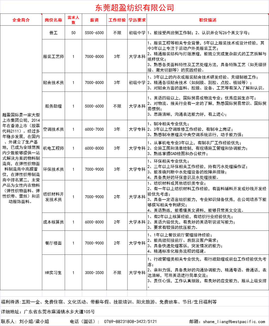 东莞超盈纺织有限公司