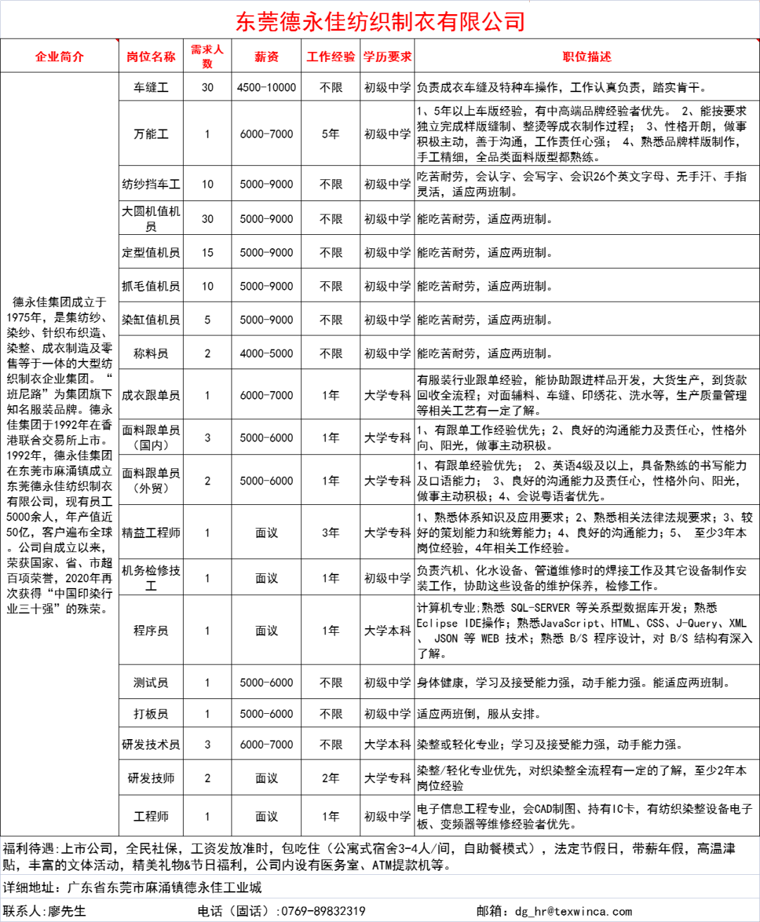 东莞德永佳纺织制衣有限公司