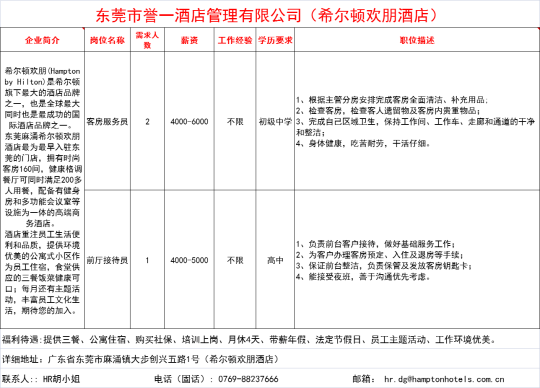 东莞市誉一酒店管理有限公司(希尔顿欢朋酒店)