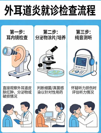 一旦出现上述症状,应立即就医。 医生会通过耳内镜检查和显微镜检来确诊。
