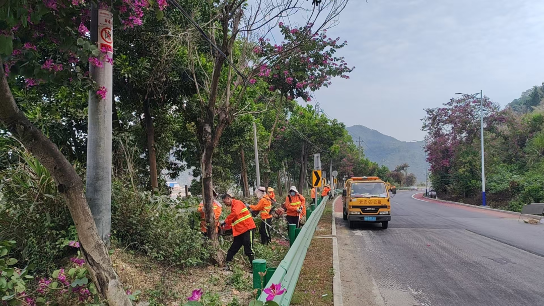 近日,云安区公路事务中心集中养护力量,对西江百里山水画廊重要路段——省道S537都杨湾边村至六都云浮新港段沿江路开展专项路域环境整治行动。通过精细化修剪路树、全面清除杂草,显著提升了道路的“颜值”与安全水平,以实际行动服务区域发展大局,助力“百千万工程”落地见效。