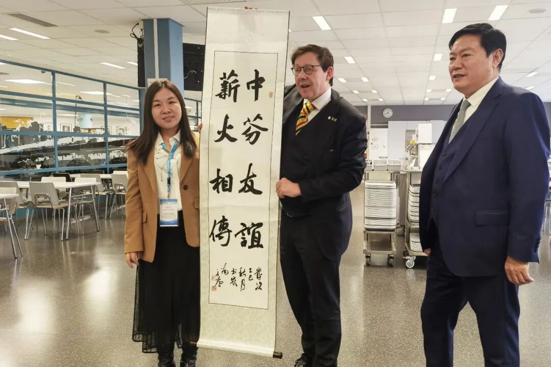 2025年11月,张兰兰作为芬兰研修团学员代表向芬兰坦佩雷市市长兼初中学校校长赠送书法作品。