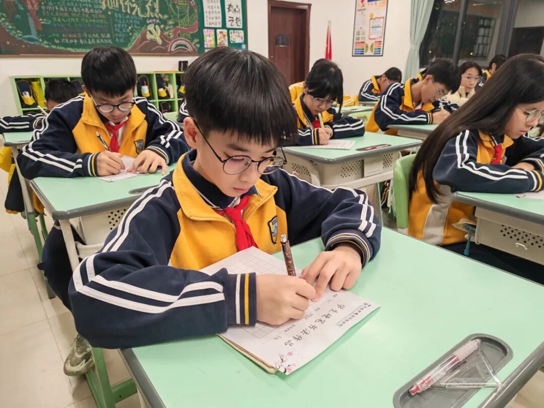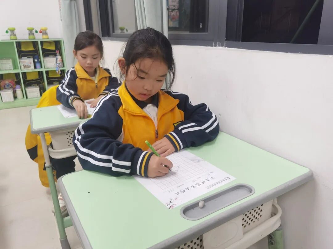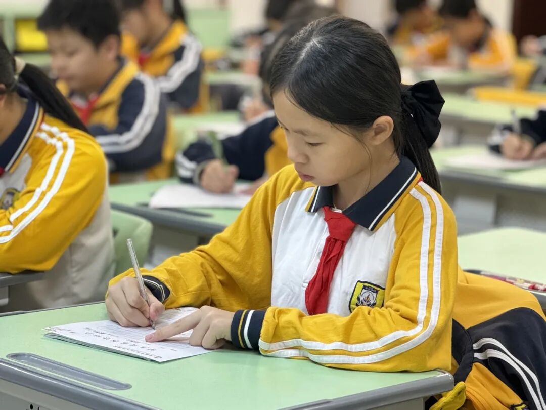 本次书写大赛覆盖小学部全体学生,赛场中秩序井然,同学们坐姿端正、神情专注,握笔有力、运笔流畅。稚嫩的小手紧握笔杆,一笔一划认真书写,点撇捺折错落有致,横平竖直方方正正,把对汉字的热爱、对经典的敬意,都融入每一个笔画之中,一张张卷面整洁美观,一个个汉字规范工整,成为赛场最动人的风景。