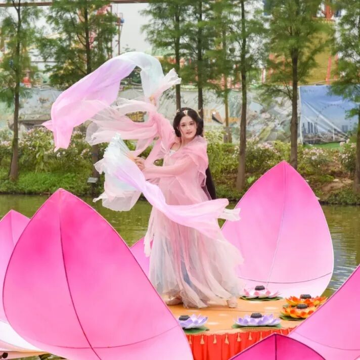 荷花台上的荷花仙子翩翩起舞,古风舞蹈尽显岭南韵味。