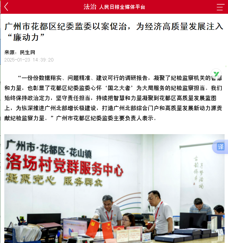 2025 年,花都区纪委监委锚定正风肃纪反腐使命任务,在监督保障执行、促进完善发展中主动作为,一系列靶向施策的创新实践、一揽子动真碰硬的整治举措、一件件惠及民生的务实成效,受到中央媒体持续聚焦关注,全年被中央媒体宣传报道26篇次。今天,我们重点选取十篇报道,同大家一起翻开这份被央媒点赞的 “硬核答卷”,重温那些激浊扬清的奋进事迹。