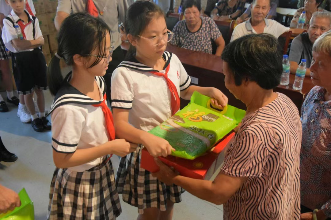 黄广师生代表慰问炭步镇步云村70岁以上老人,为他们送上节日的问候