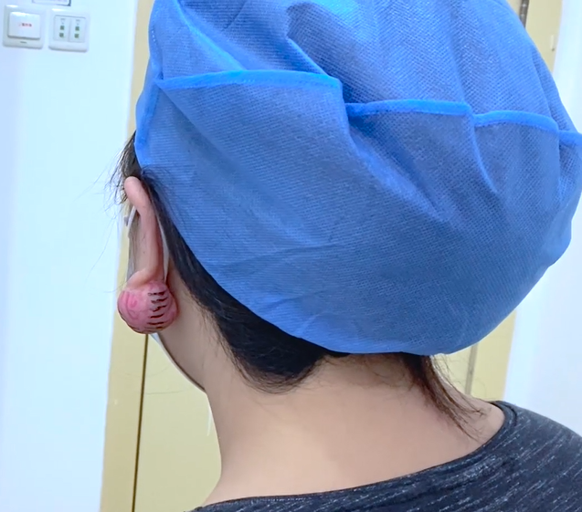 针对小林的病损情况,孙中生主任医师为她制定了瘢痕疙瘩核心切除+瘢痕表皮瓣移植+耳垂成型+电子线放射治疗方案。