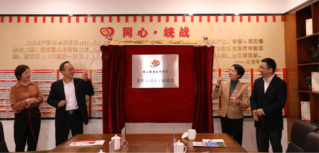 会议最后,举行了简洁而庄重的揭牌仪式。与会嘉宾共同为“佛山职业技术学院党外知识分子联谊会”揭牌,标志着佛山职业技术学院团结凝聚党外知识分子的崭新平台正式启航。