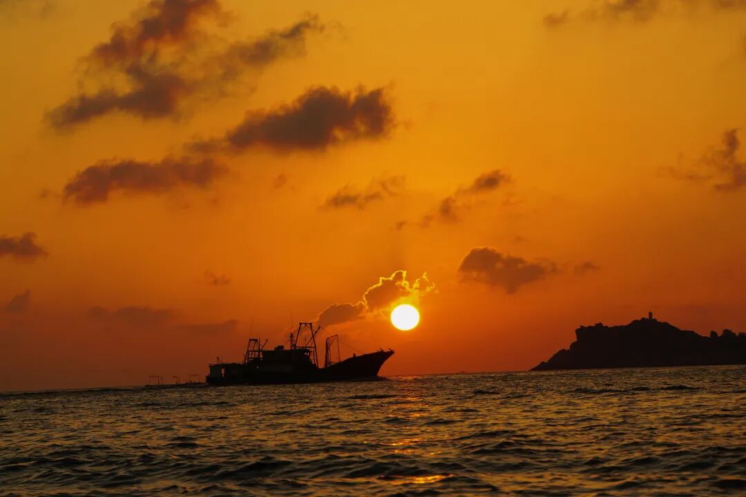 远处的渔船缓缓归来,
