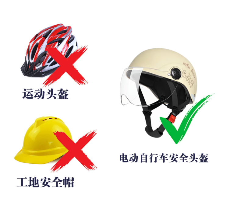 通过正规途径购买具有3C认证、质量合格的头盔。安全头盔应符合自己的头围尺寸,尽量贴合头部,太大或太小都无法起到保护作用。请不要用工地安全帽、运动头盔代替电动自行车专用头盔。儿童请使用儿童专用头盔。