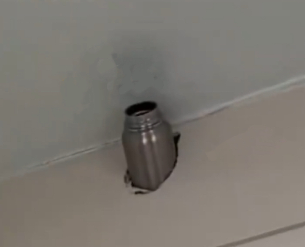 2025年8月,黑龙江黑河一男子在保温杯内用热水泡清洗剂,密封杯盖后,保温杯突然爆炸,热水四处飞喷,杯子甚至因冲击力过大而嵌入墙内。