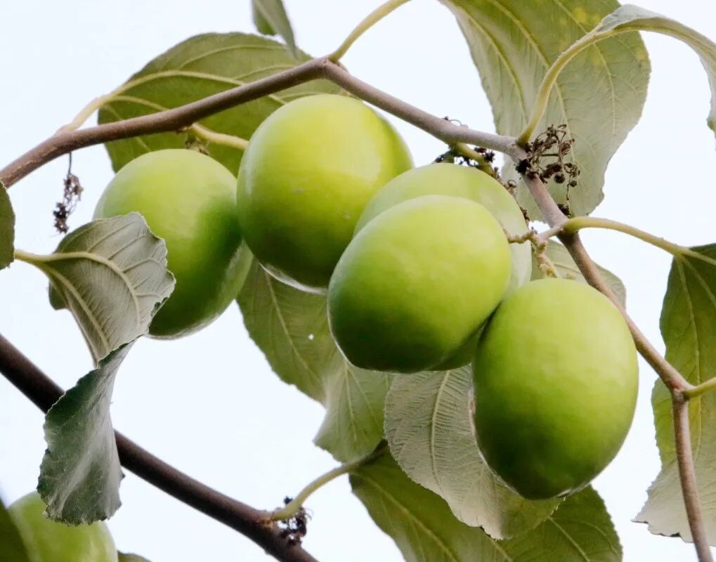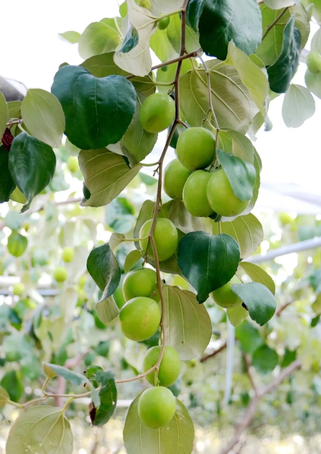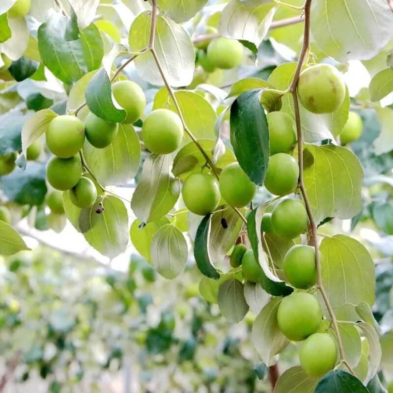 一颗颗如鸡蛋般大小的青枣表皮光滑、色泽鲜亮,缀满枝头,长势喜人。摘下一颗,咬开青翠的外皮,果肉清甜爽脆,迸发出丰盈的汁水,是冬日里难得的清爽滋味。