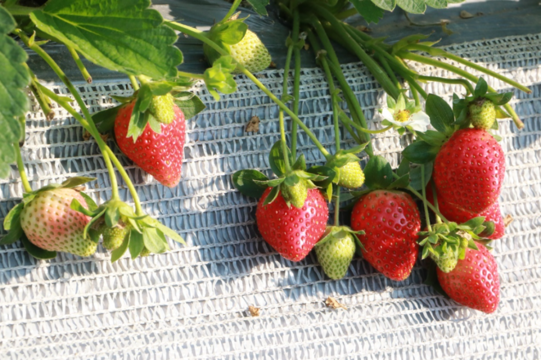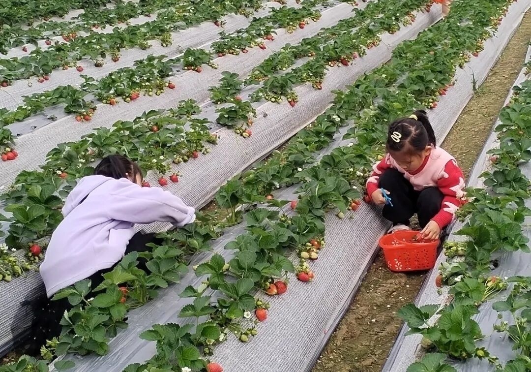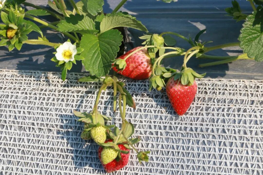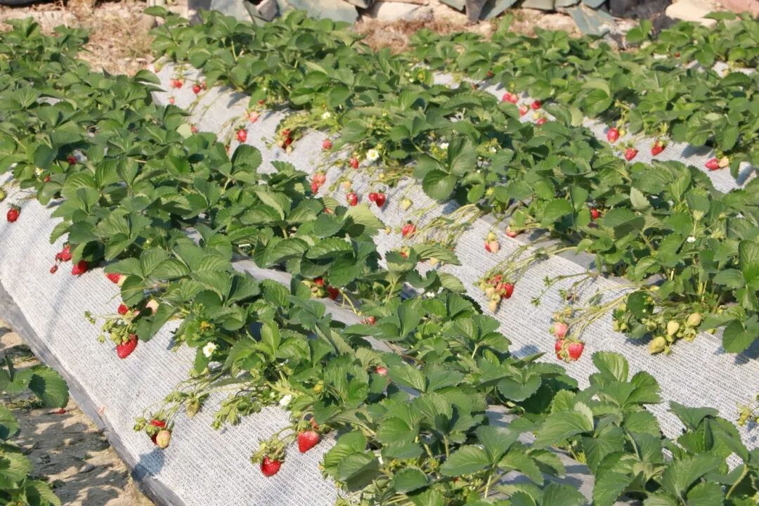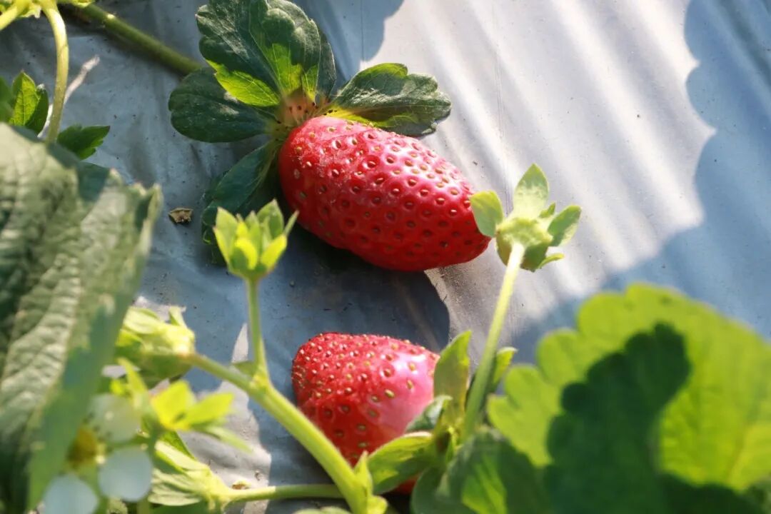 走进农场的草莓采摘园,满眼皆是生机,放眼望去,一垄垄翠绿的草莓植株整齐排列、郁郁葱葱,空气中弥漫着馥郁的果香。