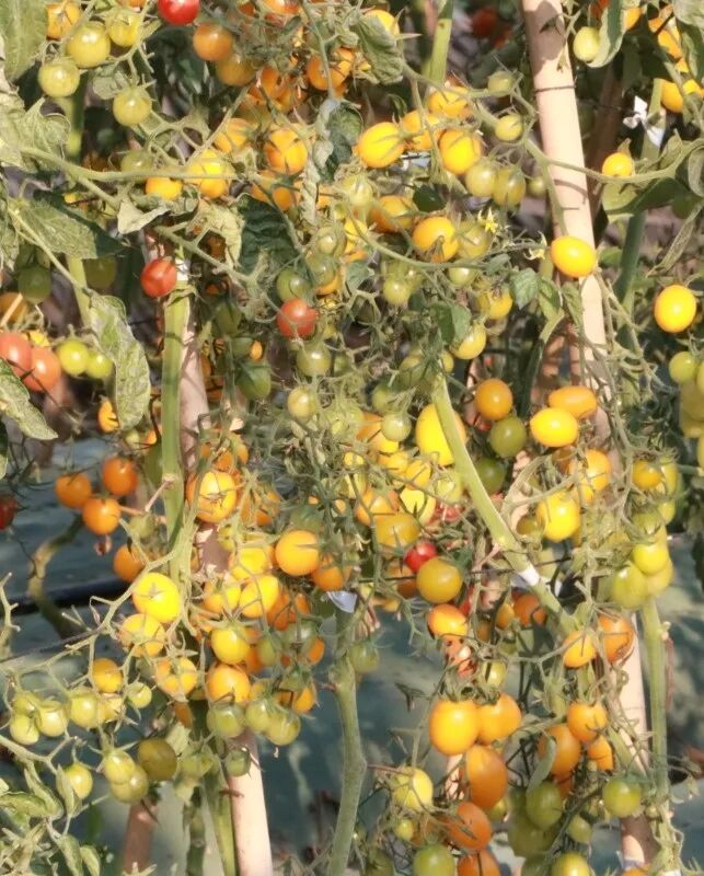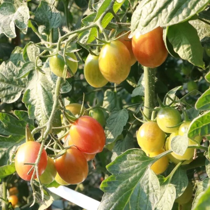 在农场的圣女果采摘区,翠绿藤蔓沿着支架攀爬伸展,层层叠叠的绿叶间,各色圣女果错落有致地挂满枝头,宛如一串串精致的小灯笼。