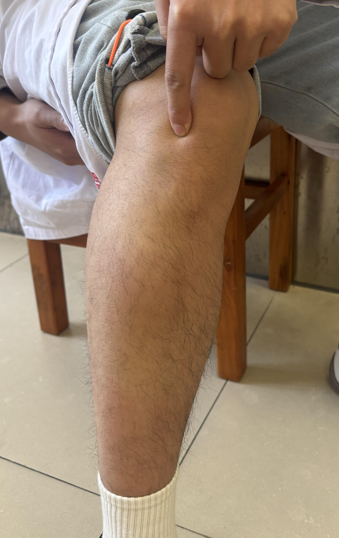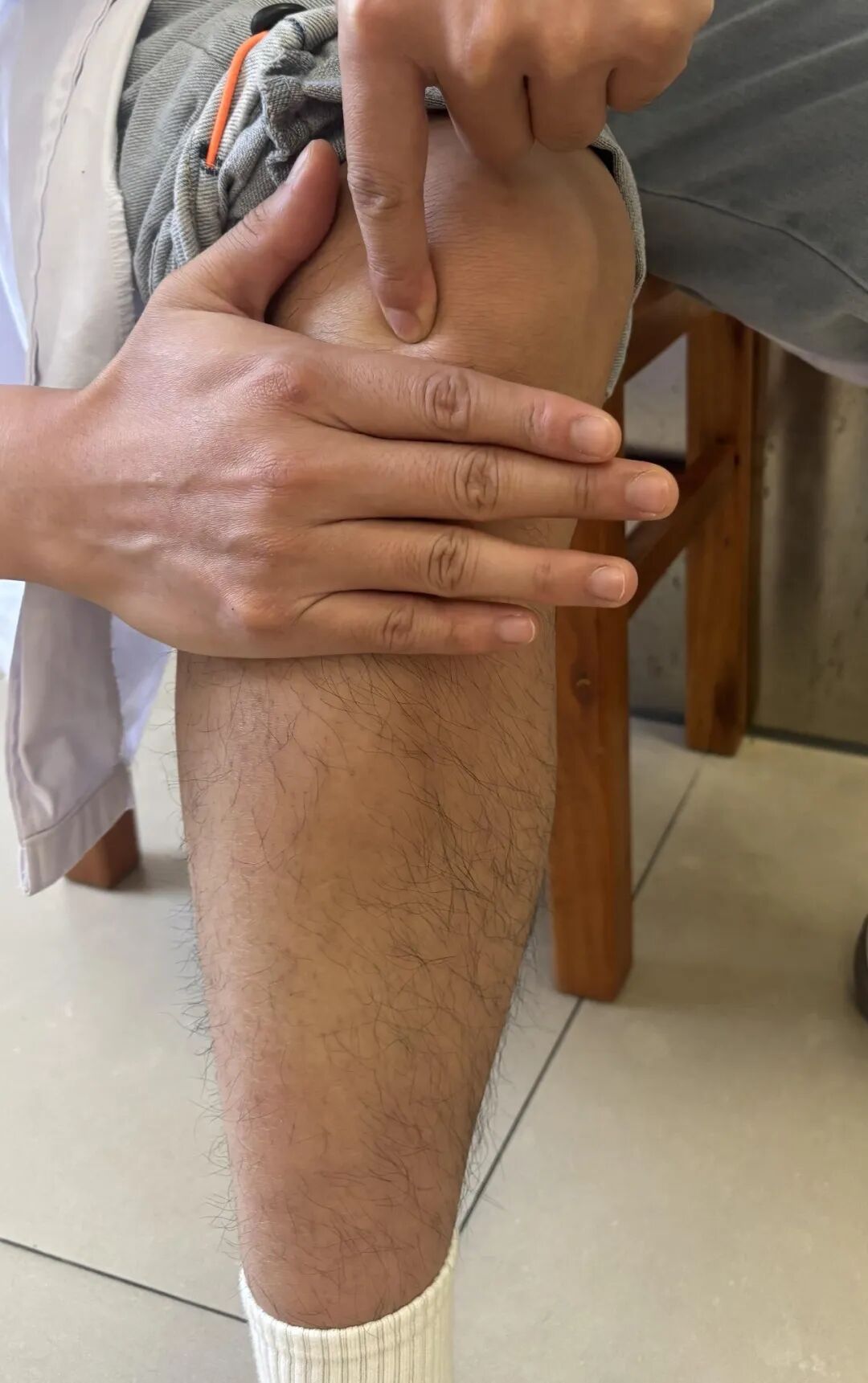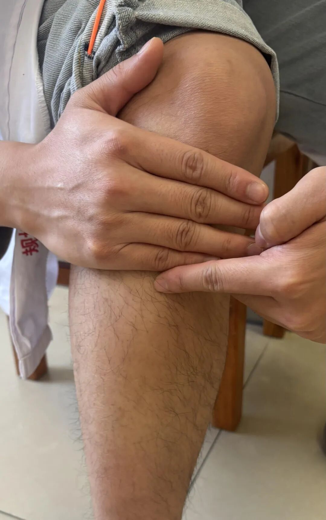 足三里位于小腿前外侧,犊鼻(外膝眼)下3寸,距胫骨前缘一横指(中指)。下面是取穴三步法: