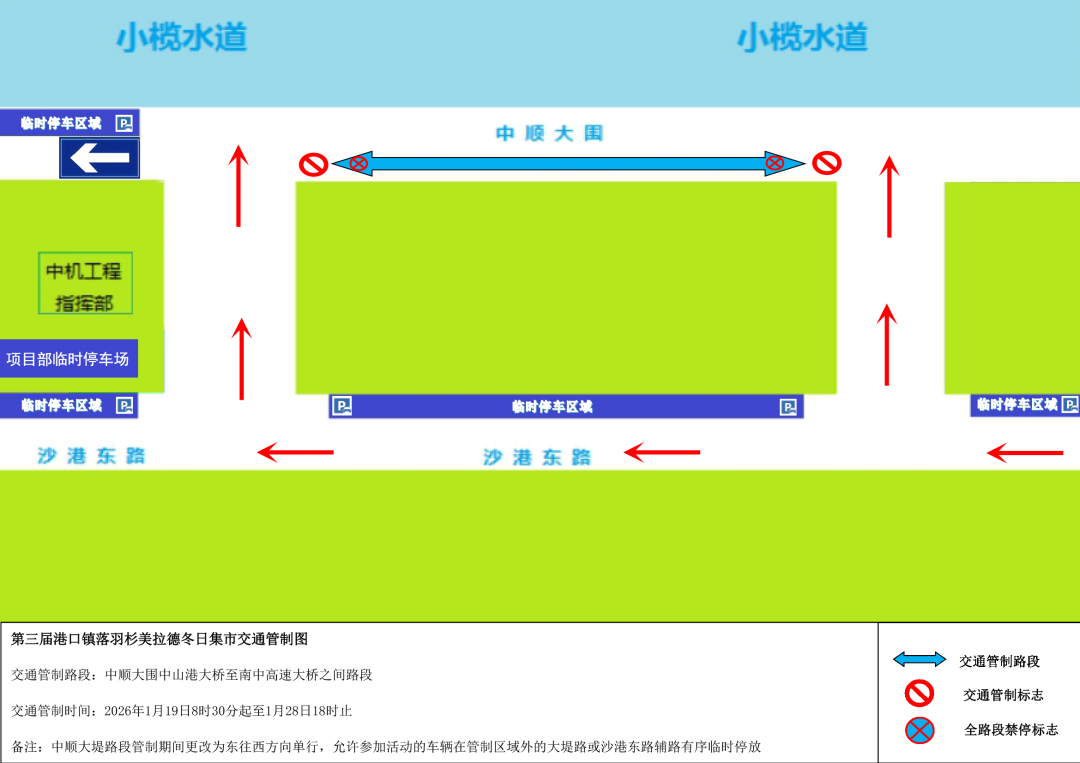 为确保“杉遇马大丰 桥畔迎好市——港口镇第三届落羽杉美拉德冬日集市”顺利举行,根据《中华人民共和国道路交通安全法》第三十九条规定,港口公安分局交管大队将于2026年1月19日至2026年1月28日,对中顺大围中山港大桥至南中高速大桥之间路段实施临时交通管制措施。现就有关事项通告如下: