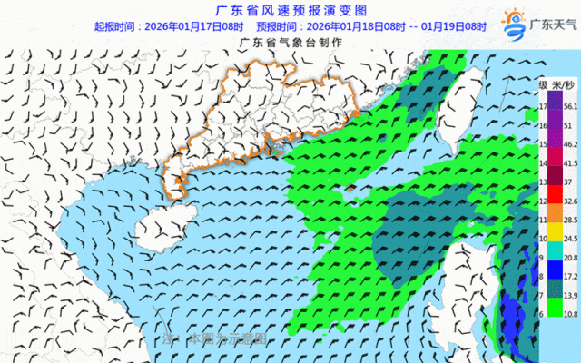 ● 18日起广东海面风力加大,注意海上交通和作业安全。